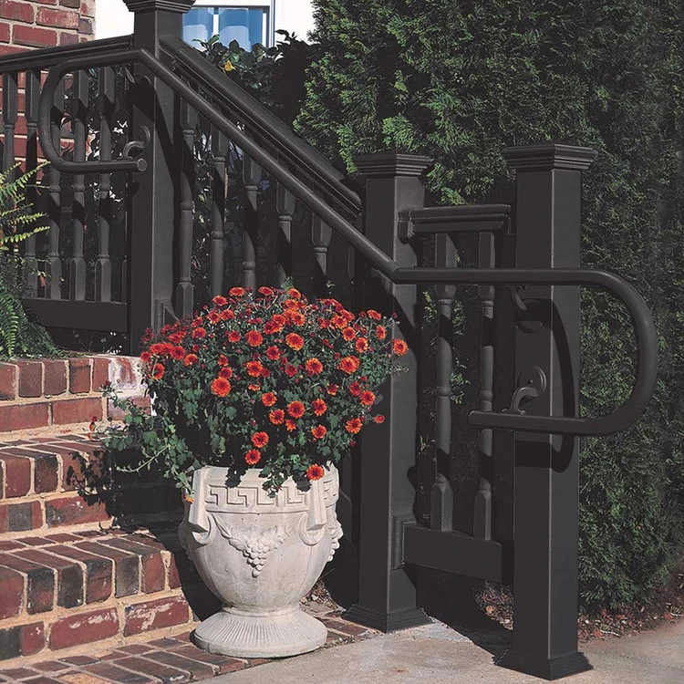 Deckorators ADA-compliant handrail components are ideal for meeting special building codes, along with very practical for homes with small children and seniors. Made of heavy-gauge aluminum and durable PVC, the 12″ x 18″ x 12″ 180-degree return loop is available in textured black, textured white and weathered brown to complement popular railing products used in new home and building construction.