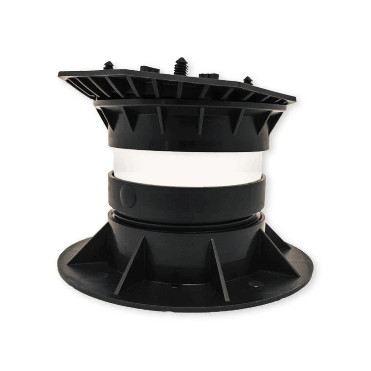 The screw-to-adjust base height setting makes final adjustment levels effortless for perfectly level deck tile surfaces. The Altitudes Pedestal System head and base have deck drainage holes for water, are exceptionally stable with 4 inch PVC Schedule 40 Plain End Pipe, and are impervious to freeze thaw cycles from the use of 20% Talc added to a polypropylene resin.