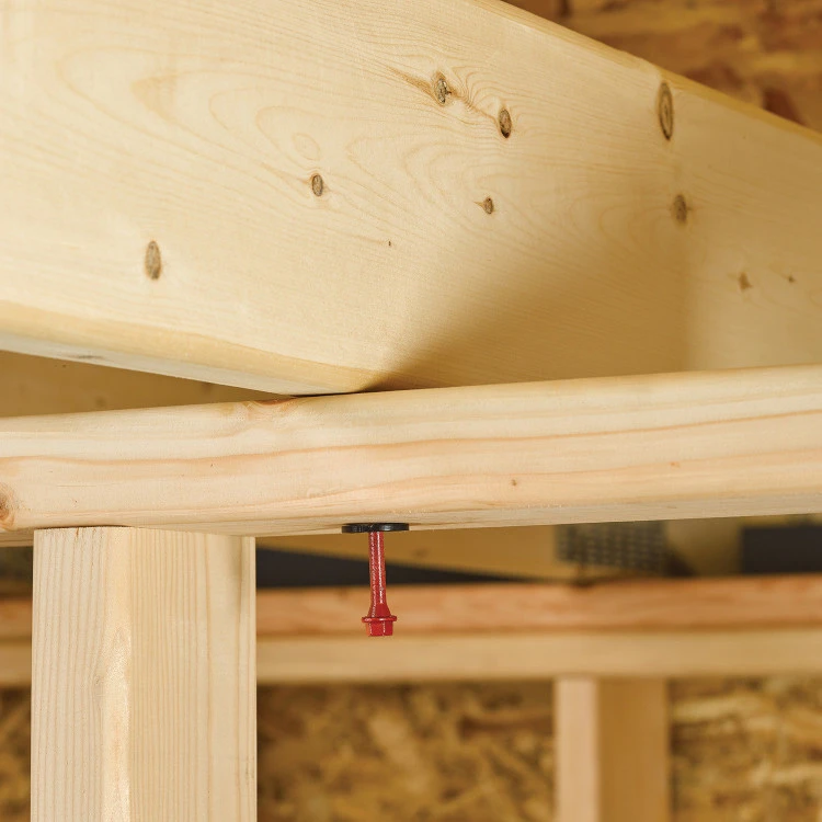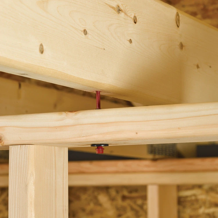 - 6″ hardened structural screw with sharp point and aggressive thread quickly pass through the plate and engages truss with wings cutting hole in top plate