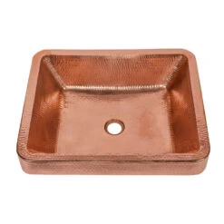 Premier Copper Products 19″ Rectangle Skirted Vessel Hammered Copper Sink In Polished Copper