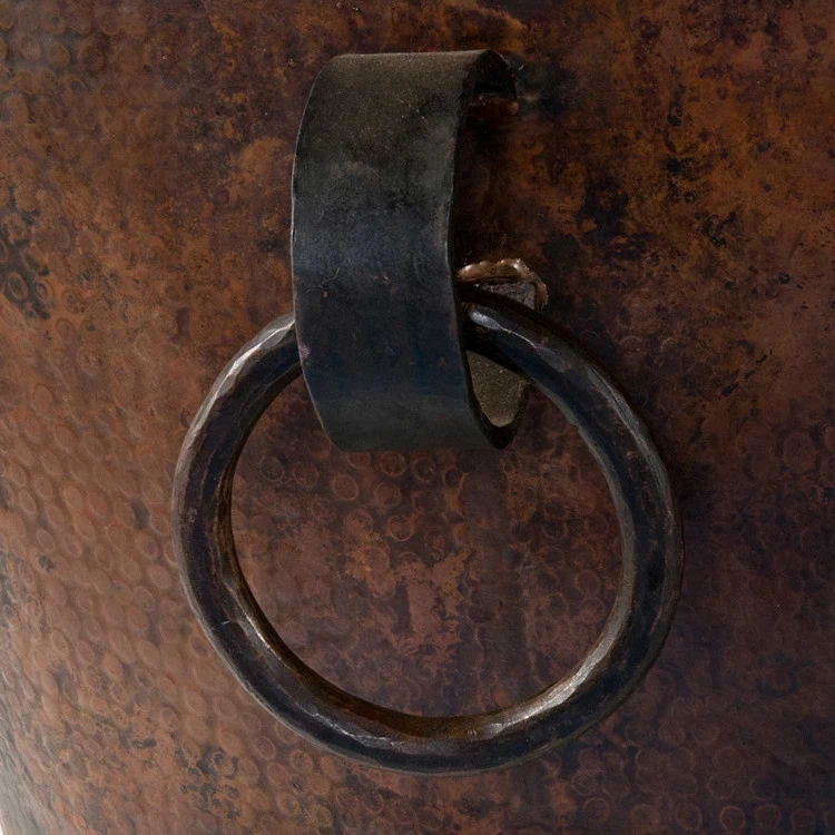 Uncompromising quality, beauty, and functionality make up this Premier 67″ Hammered Copper Double Slipper Tub With Rings.