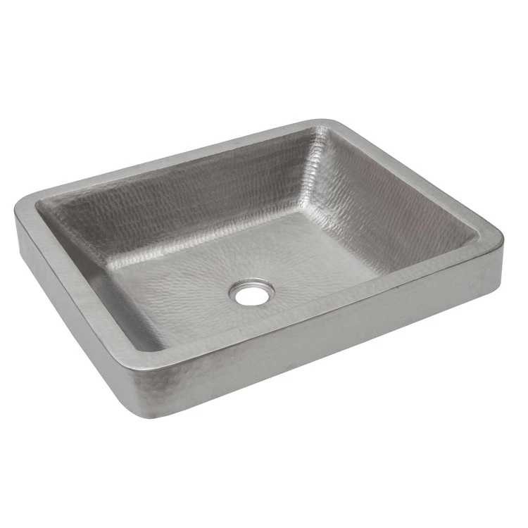 The Rectangle Skirted Vessel Hammered Copper Sink in Electroless Nickel has the handcrafted beauty of copper with the modern look of steel. These are premier plated handmade sinks using a highly specialized Electroless Nickel Plating (ENP) process that provides both visual and functional durability.