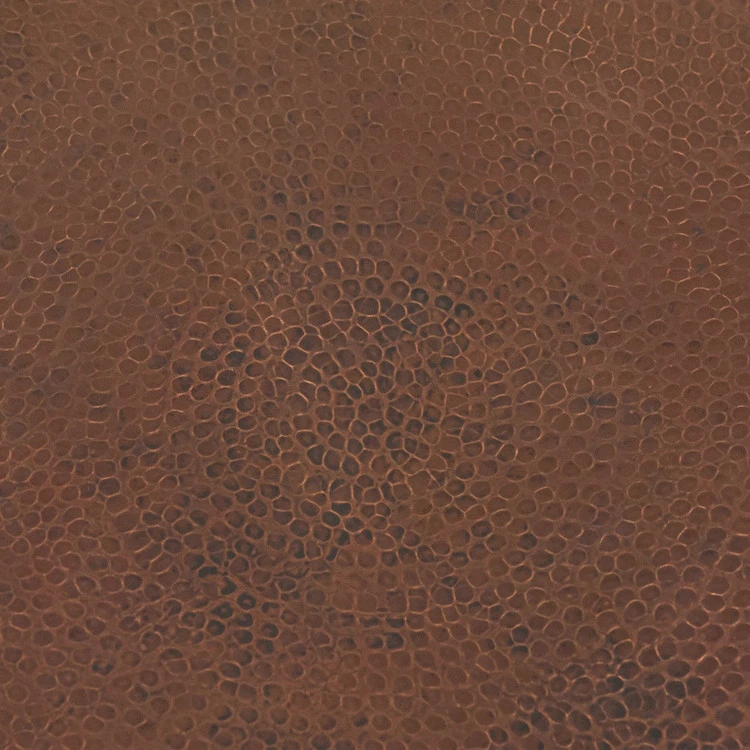 The Premier Copper Products Round Hammered Copper Table Top is a hand made top that had a fired patina with an oil rubbed bronze color. The living finish will form a new patina over time. The hammered copper surface is wrapped over a medium-density fiberboard and does not include a stand.