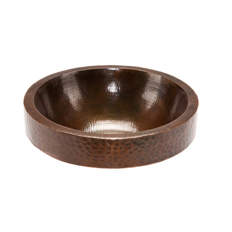 Premier Copper Products Round Skirted Vessel Hammered Copper Sink