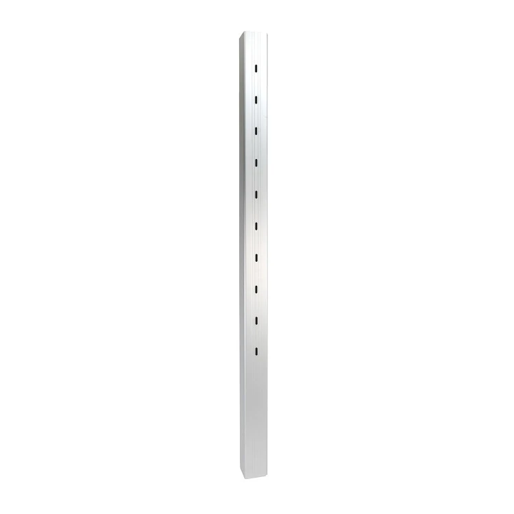 The RailFX Intermediate Stair Post – 2-3/8″ x 52″ is a square surface mount post. Due to many variables in stairs, these posts do not come with a base plate attached. This allows the post to be placed, adjusted, and mounted where desired. Stair post holes are slotted and drilled at 3-3/16” on center and offset to allow cables to pass through at the angle of the stair. There are 12 slotted holes to accommodate a 42″ rail height. The longer length (52″) allows the post to be cut to the appropriate height.
