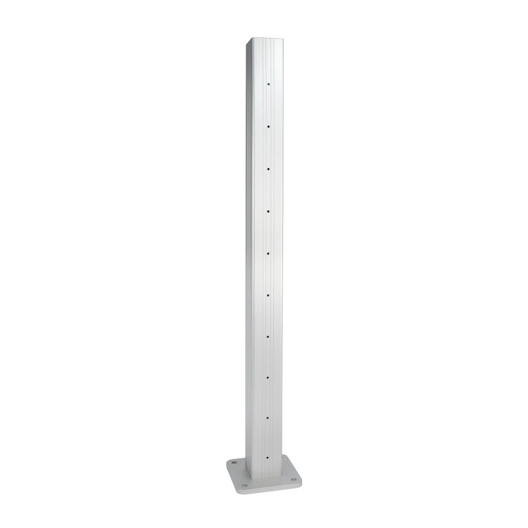 The RailFX Surface Mount Post for Horizontal Cable Railing – 2-3/8″ x 35″ is a square surface mount post. There are 10 holes for 36” rail height. The 5” base plate and bolt cap covers are included. Base plate holes for fasteners are 3/8”. Pre-drilled post is drilled at 3-3/16” on center spacing engineered to meet code. Posts must be placed at no more than 60” on center spacing. Fasteners for mounting the base plate to the deck are sold separately.