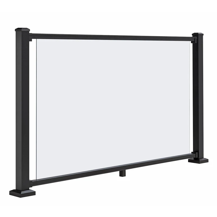 The Trex Signature Glass Panel Kit brings a sleek design to the backyard with the view-optimizing aspects of cable rail but with the strength of aluminum. The durable powder coating of the material to retain its color and resist corrosion along with the superior strength of the aluminum creates a long-lasting dependable product.